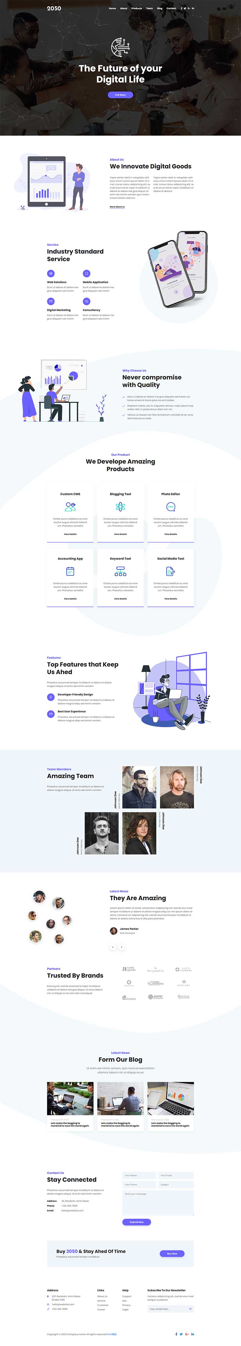 数字产品信息服务公司HTML模板是专为数字产品信息服务公司设计的网站模板。该模板以简洁、卡通的设计风格为特点,首页轮播图带滚动粒子,给人一种高科技的感觉,帮助公司展示其专业的数字产品信息服务,吸引潜在客户的注意。该模板基于HTML5技术,具有良好的兼容性和加载速度,适用于各种设备和浏览器。无论是初创公司还是已有一定规模的企业,都可以使用这个数字产品信息服务公司HTML模板,提升在线形象,吸引更多的客户。