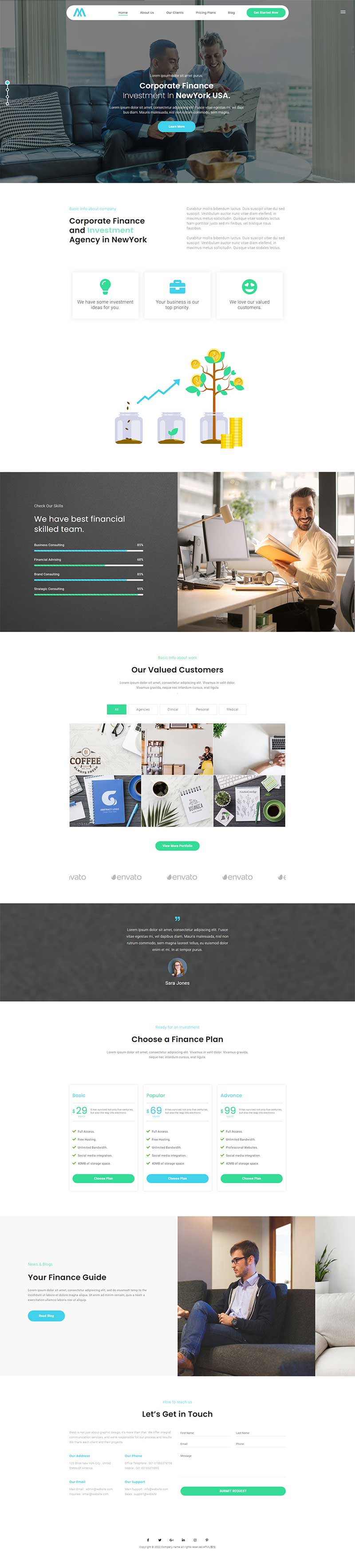 这套金融投资类html模板非常精致,让人几乎挑不出什么毛病,尤其是banner图的侧边导航列表,以及文字跟随动画效果,案例图片集的鼠标跟随背景滑块,都设计得恰到好处,不得不佩服设计师高超的水平。