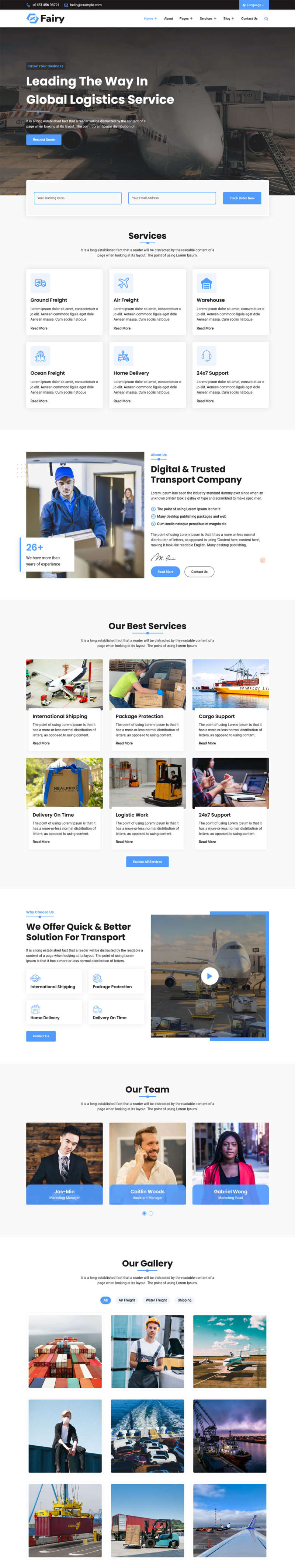 这是一款物流快递行业的HTML模板,有单号查询表单。该模板采用简洁明了的设计风格,方便用户快速查询物流信息。支持输入单号查询物流信息,同时还提供了多种物流公司的选择,方便用户选择自己需要的物流公司进行查询。该模板还支持响应式布局,可以适应不同的屏幕尺寸,方便用户在不同设备上访问。总之,这是一款功能齐全、简洁明了的单号查询物流快递行业HTML模板,适合各类物流快递公司使用。