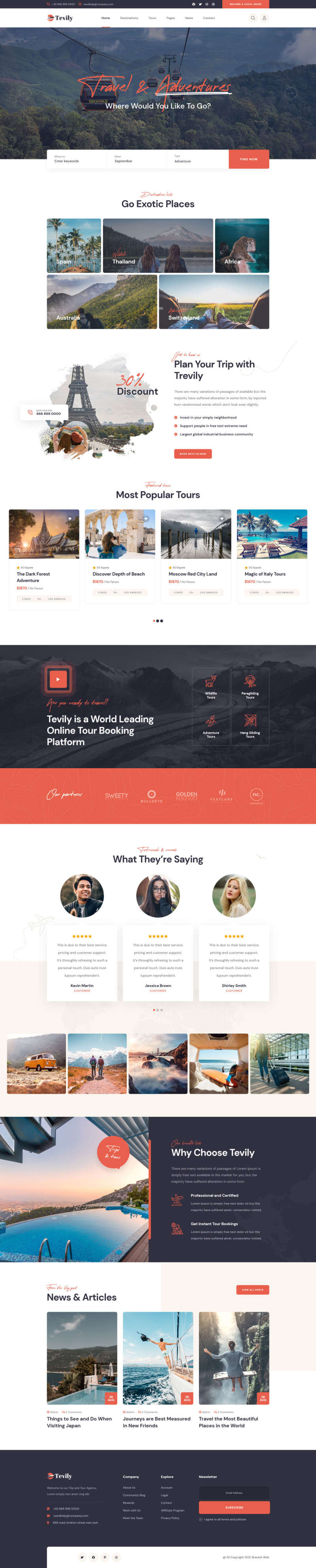 该模板适用于旅游行业,包括旅游项目介绍、旅行社、旅游团报名,可以查询目的地和探险项目的详情。可用浏览器翻译成中文。